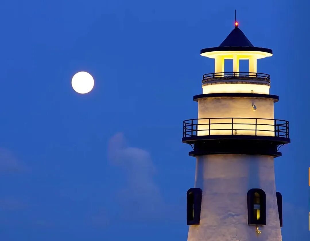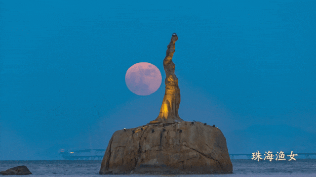 △2024年9月17日,珠海爱情灯塔与“超级月亮” 同框。贾刘一珏/摄