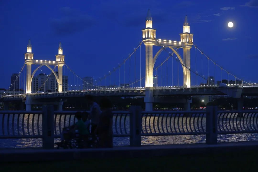 △2024年9月17日,珠海白石桥与“超级月亮” 同框。李建束/摄